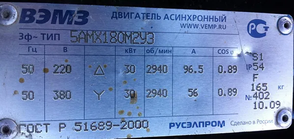 Номинальная мощность двигателя = 30кВт и номинальный ток = 56А.
