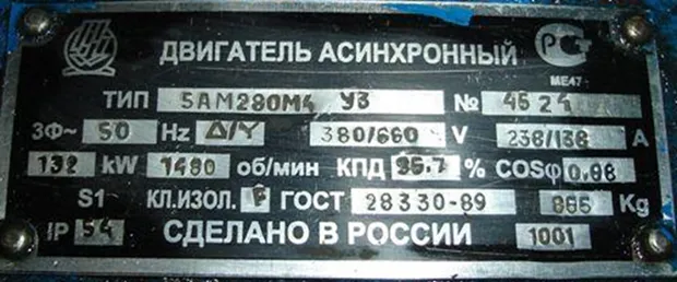 Номинальная мощность двигателя = 132кВт и номинальный ток = 238А.