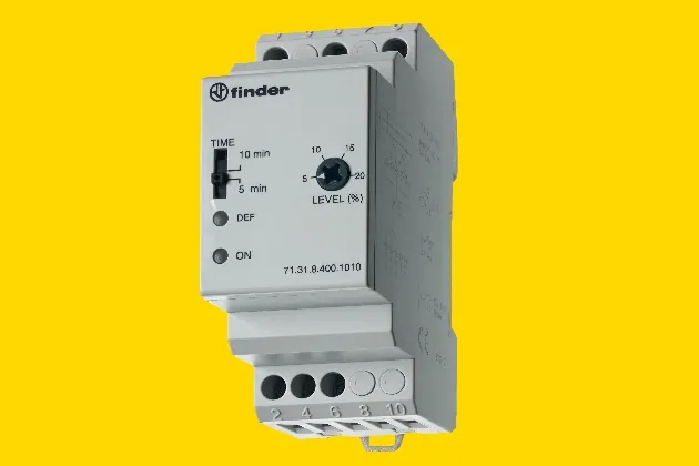 Однофазное реле с фиксированными настройками EZ9C1240 производства Schneider контролирует только уровень напряжения. Если напряжение сети выйдет за пределы 160…265 В, то реле отключит нагрузку. Особенностью данного реле является мощный силовой контакт 40 А, позволяющий управлять нагрузкой напрямую без использования контактора. Другой пример — реле 711182300010 производства Finder, которое имеет фиксированную уставку 172…276В, а также задержку включения 5 или 10 мин на выбор. Задержка позволят избежать частных включений и отключений нагрузки, что особенно актуально для компрессоров в холодильнике.