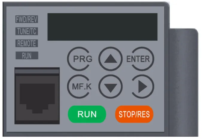MF.K — это дополнительная функциональная кнопка, которую можно настроить на необходимое действие, например переключение между местным и дистанционным управлением или смену направления вращения.