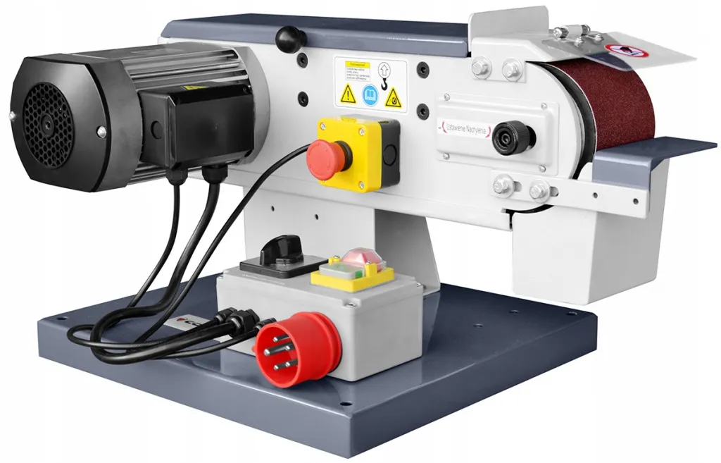 Для примера возьмем шлифовальный станок, который часто можно встретить в промышленном цеху или в столярной мастерской. Для качественной работы станка движение должно осуществляться в двух направлениях, скорость вращения ленты — меняться плавно, а аварийная кнопка мгновенно отключать питание. Без преобразователя частоты тут точно не обойтись.