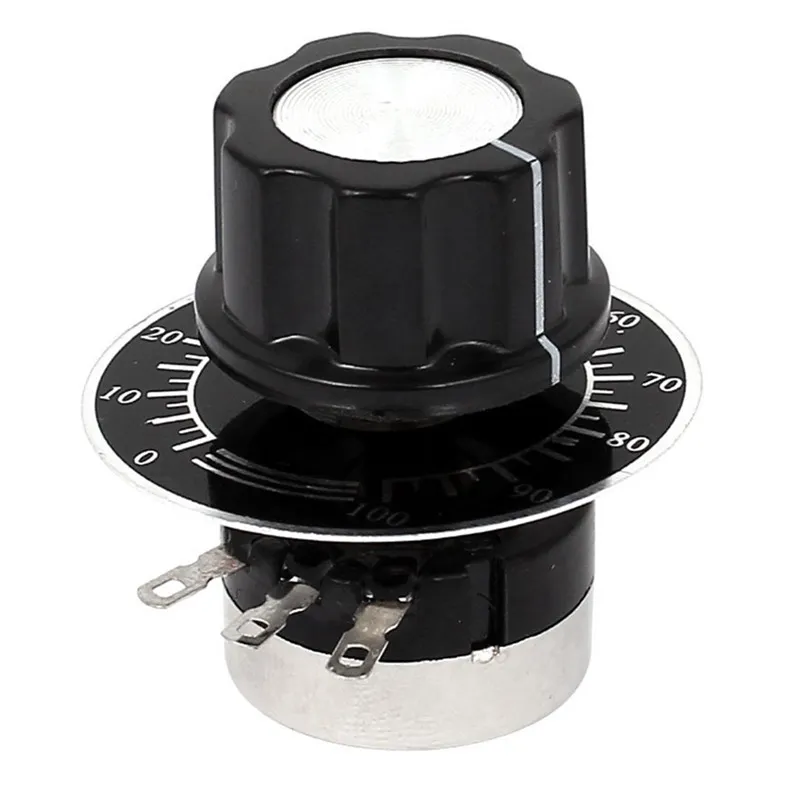 Любой потенциометр не подойдёт, необходим с сопротивлением от 2 до 5 кОм, чтобы аналоговый вход стабильно работал. А ещё он должен быть с удобной ручкой, ведь крутить его придётся постоянно. Мощность может быть любой, даже 0,125 Вт достаточно. Идеально подойдёт XB5AD912R4K7 с сопротивлением 4,7 кОм.