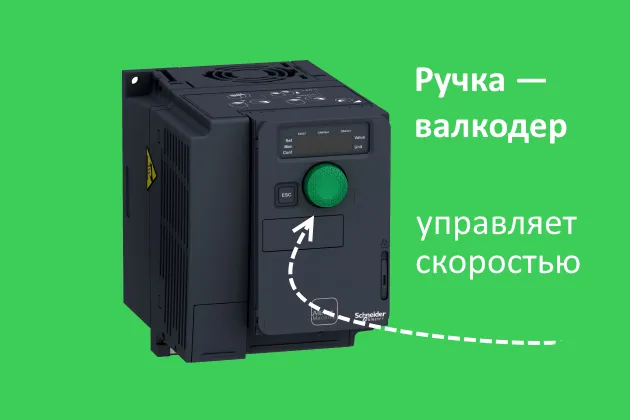 Рассмотрим на примере ATV320U06N4C, который управляет скоростью конвейера. Настройки на всех преобразователях серии аналогичны и отличаются только значениями характеристик двигателя.