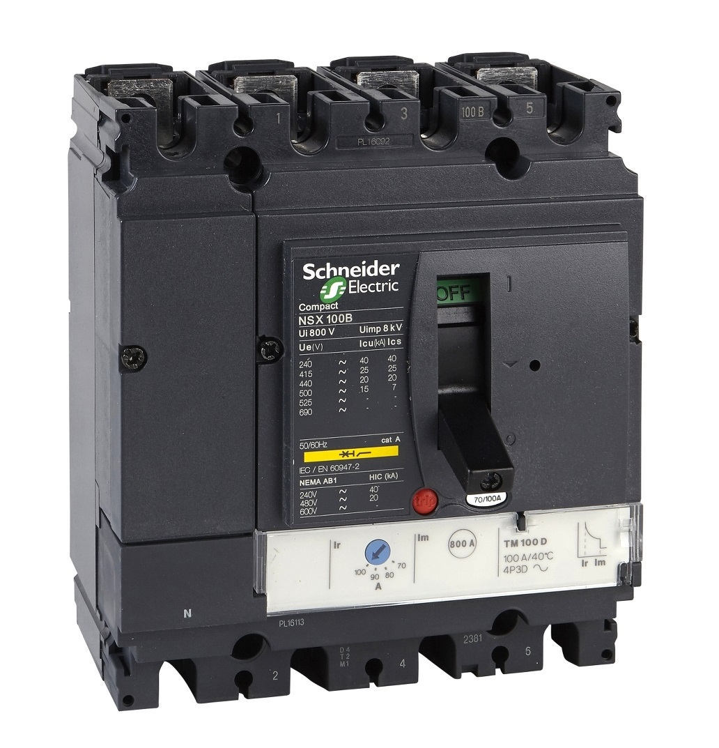 Автоматический выключатель Schneider Electric, серии Compact NSX с термомагнитным расцепителем TM-D. Для защиты кабельных линий и силовых трансформаторов.