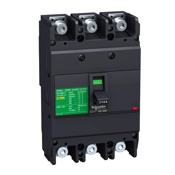Автоматический выключатель Schneider Electric, серии EasyPact EZC 250 с термомагнитным расцепителем для защиты кабелей и силовых трансформаторов от перегрузки и токов короткого замыкания. Уставка по перегрузке и току К.З. фиксированы.