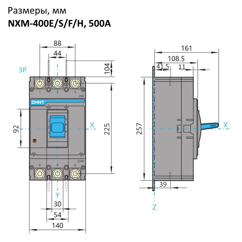 844369 | Автоматический выключатель NXM-630H/3P 500А 70кА, Chint