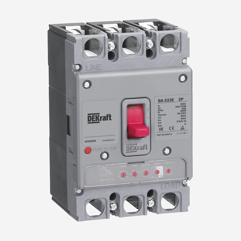 22490DEK | Силовой авт. выключатель с электрон. расц. 3P 32А 50кА ВА-333E, Dekraft