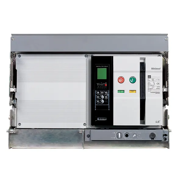 Воздушный автоматический выключатель LSIS, серии Metasol. Серия включается в себя трех и четырех полюсные автоматы, номинальными токами от 630 до 6300А, отключающей способностью от 65 до 150 кА, выкатного или стационарного исполнения.