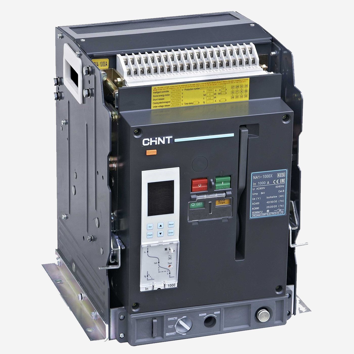 Автоматические выключатели Chint серии NA1 выпускаются в трёхполюсном исполнении, и работают в диапазоне токов от 400 до 6300 А