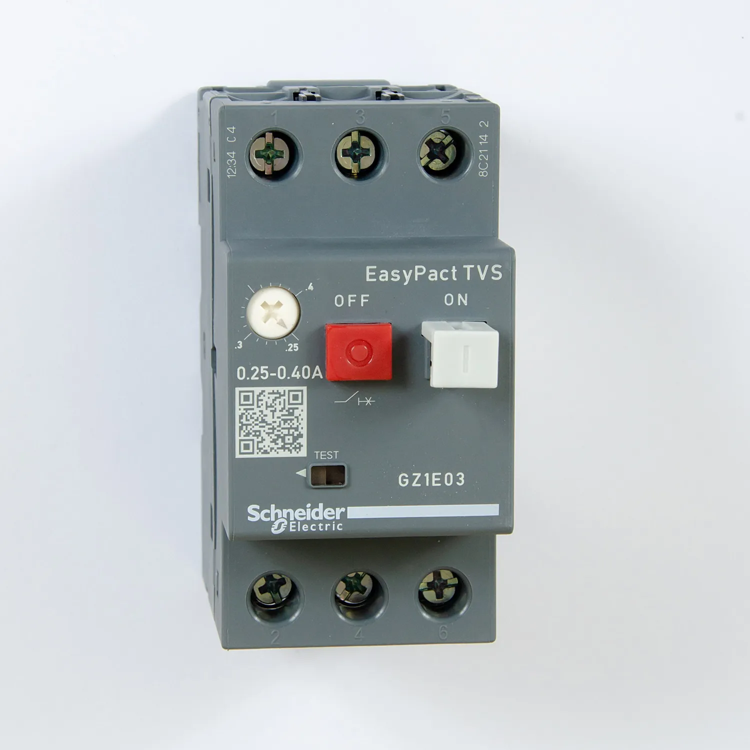 Автоматический выключатель для защиты электродвигателей от короткого замыкания и перегрузки. Совмещает в себе функции автоматического выключателя и теплового реле одновременно. Ток отключения по перегрузке легко настраивается отверткой с помощью регулировочного диска.