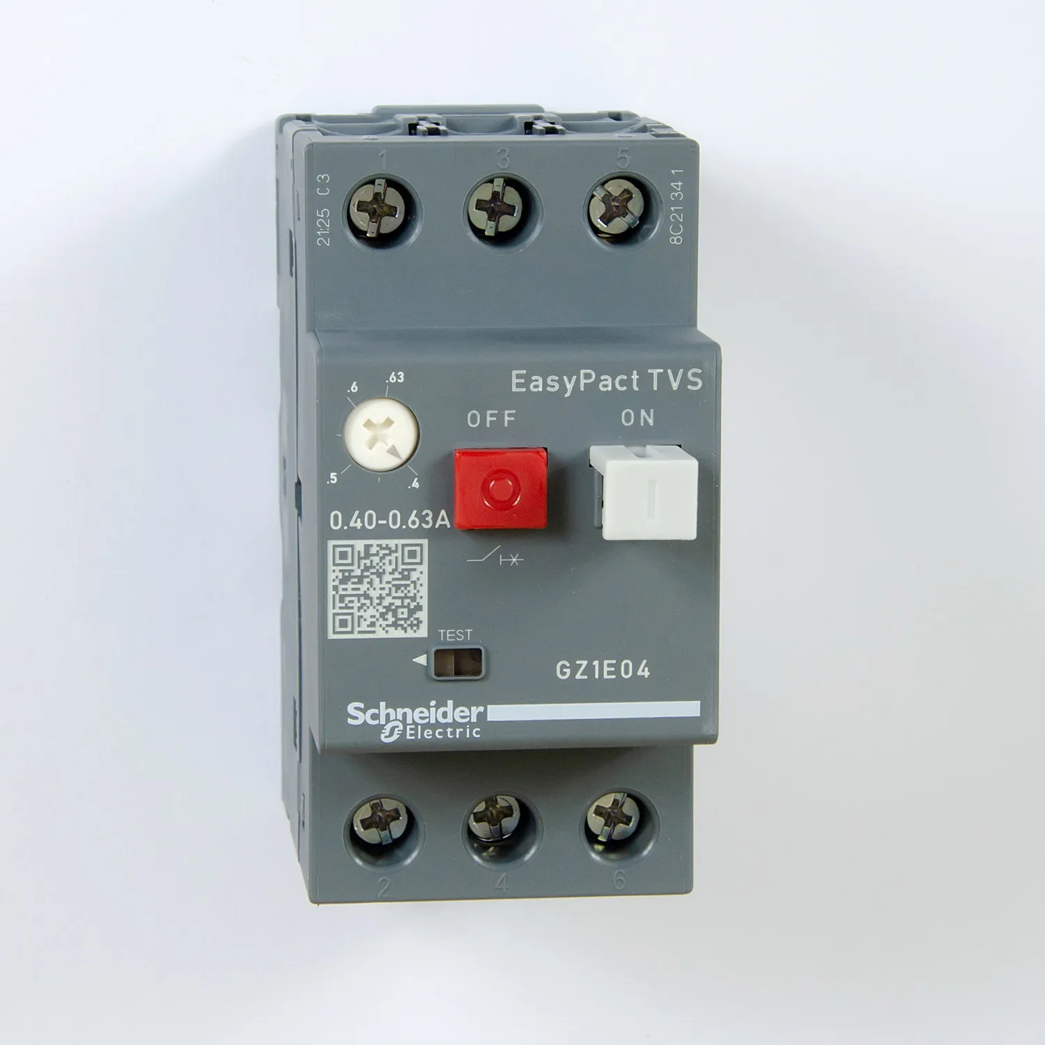 Автоматический выключатель для защиты электродвигателей от короткого замыкания и перегрузки. Совмещает в себе функции автоматического выключателя и теплового реле одновременно. Ток отключения по перегрузке легко настраивается отверткой с помощью регулировочного диска.