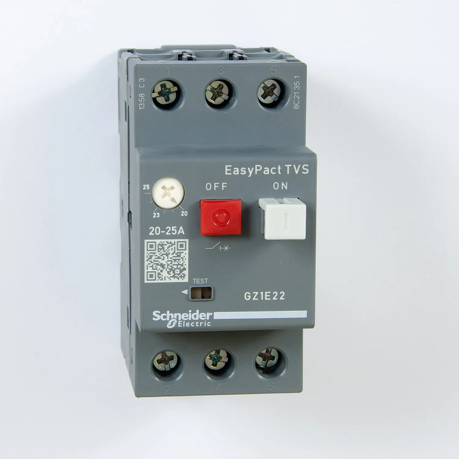 Автоматический выключатель для защиты электродвигателей от короткого замыкания и перегрузки. Совмещает в себе функции автоматического выключателя и теплового реле одновременно. Ток отключения по перегрузке легко настраивается отверткой с помощью регулировочного диска.