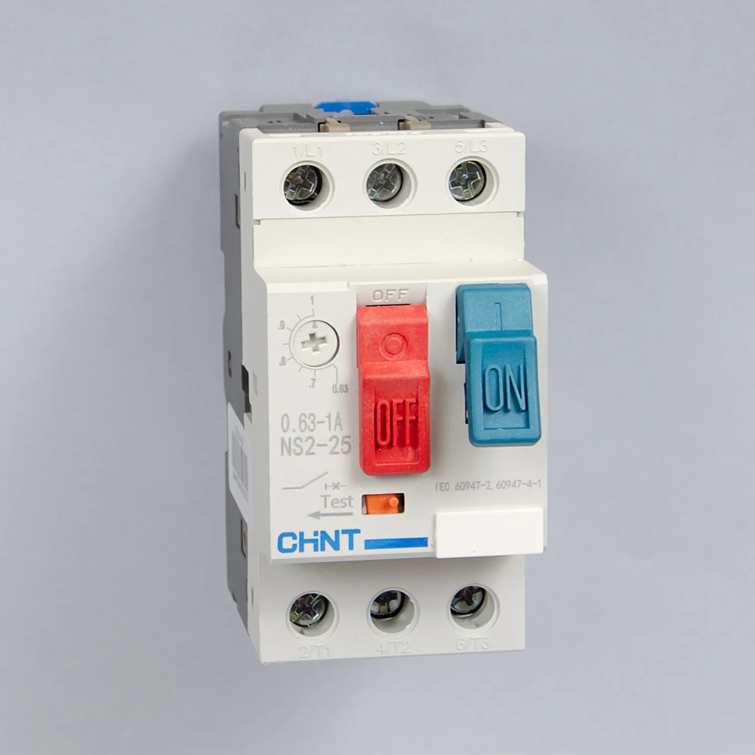 NS2 — серия ручных пускателей Chint для управления и защиты двигателей. В серию входят мотор-автоматы с кнопками управления и поворотной рукояткой до 80А, а также специальные боксы с защитой IP55. Все пускатели NS2 поддерживают установку вспомогательных контактов и независимых расцепителей.