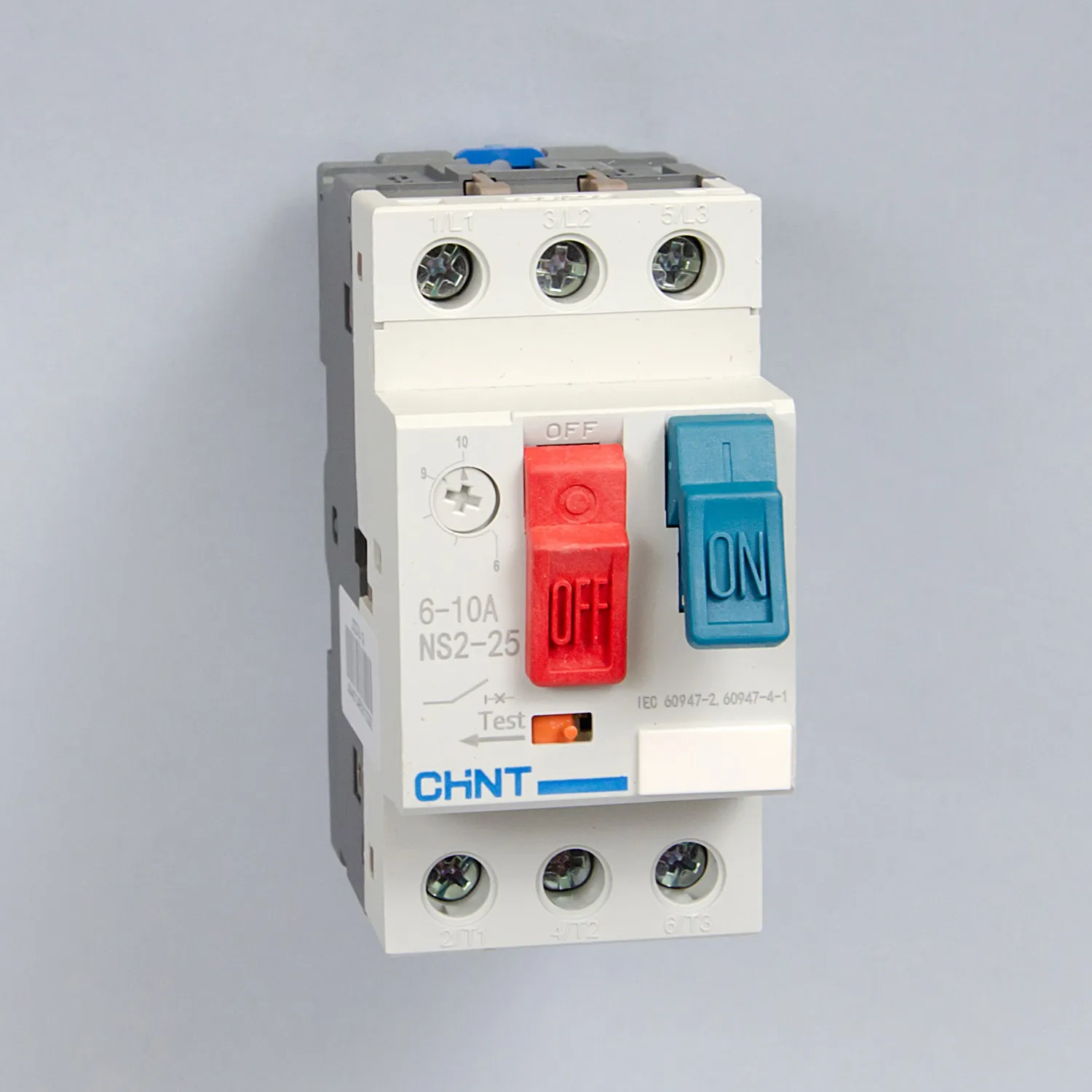 NS2 — серия ручных пускателей Chint для управления и защиты двигателей. В серию входят мотор-автоматы с кнопками управления и поворотной рукояткой до 80А, а также специальные боксы с защитой IP55. Все пускатели NS2 поддерживают установку вспомогательных контактов и независимых расцепителей.