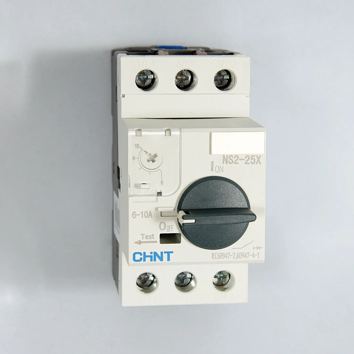 NS2 — серия ручных пускателей Chint для управления и защиты двигателей. В серию входят мотор-автоматы с кнопками управления и поворотной рукояткой до 80А, а также специальные боксы с защитой IP55. Все пускатели NS2 поддерживают установку вспомогательных контактов и независимых расцепителей.