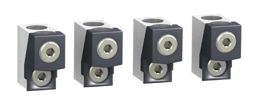 Комплект из четырёх распределительных клемм для автоматических выключателей и разъединителей нагрузки Schneider Electric.