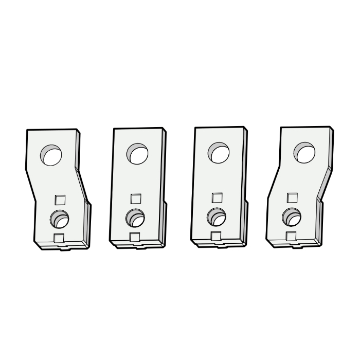 Для переднего подключения медных или алюминиевых шин и кабельных наконечников. Расстояние между центрами полюсов 52,5 мм. В комплекте четыре расширителя.