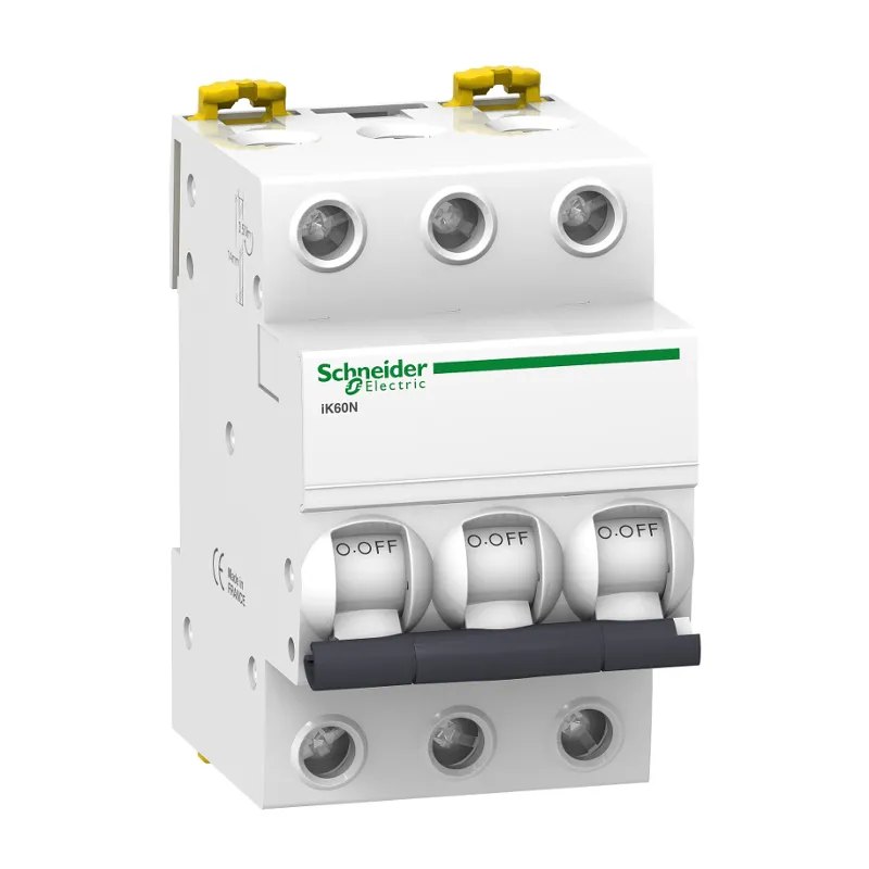 IK60 N — промышленная серия выключателей с основным набором характеристик для применений, где не требуются аксессуары. Серия Acti9 iK60 при своей внешней схожести с IC60 отличается как техническими особенностями, так и ценой. В серии iK60 есть только популярная кривая отключения — С, на iK60 нельзя установить расцепитель и дополнительные контакты. На лицевой панели iK60 нет индикаторов VisiSafe и VisiTrip, а также изолирующих шторок на клеммах. В одном ряду обе серии выглядят практически одинаково, что позволяет использовать их одновременно и сэкономить там, где опции не нужны. Сертификат соответствия у серии iK60 получен только для жилищного и гражданского строительства. Изготовлены: iK60 на заводе в Тайланде, а серия IC60 - во Франции.
