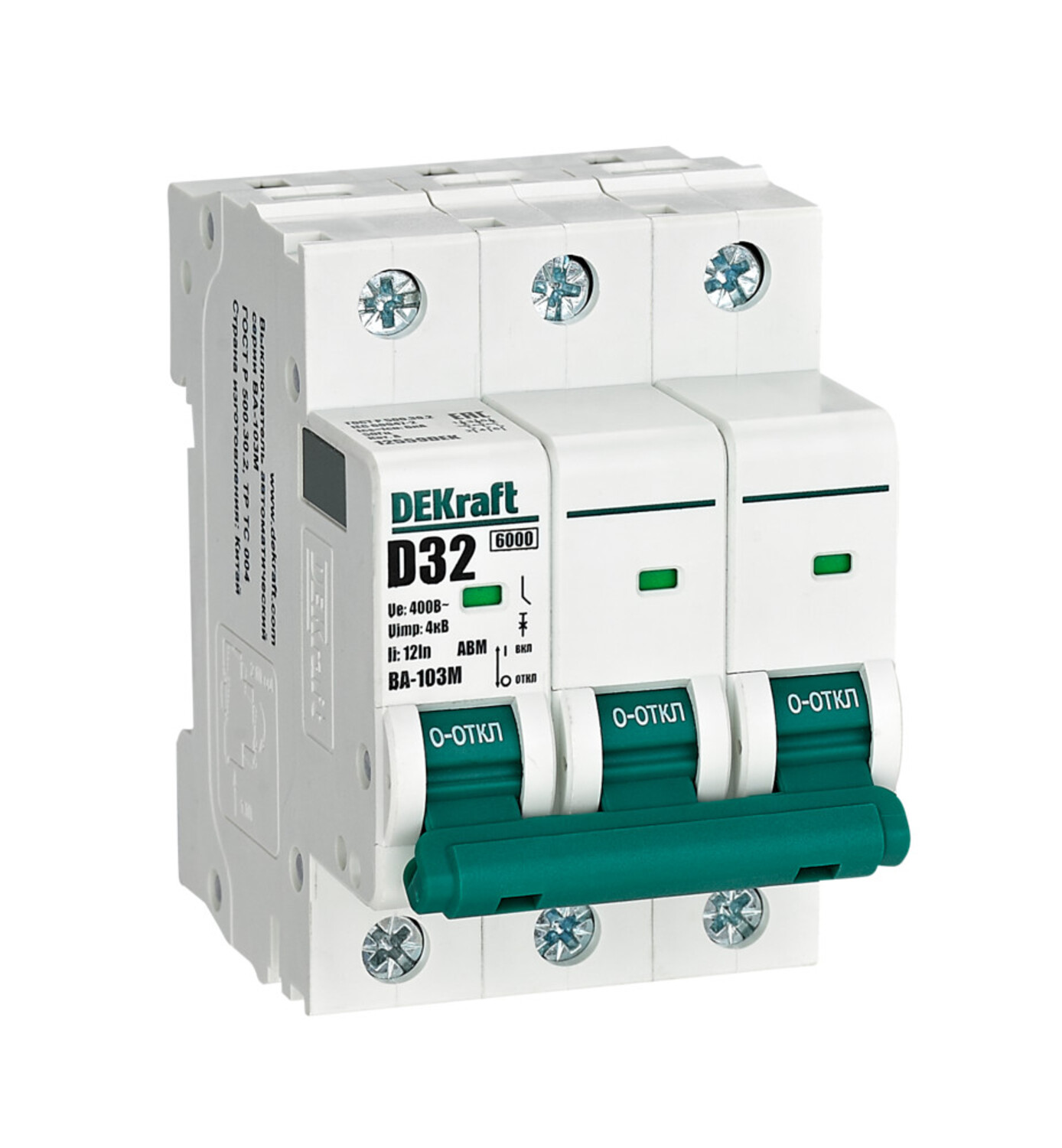 12559DEK | Автоматический выключатель ВА-103М 3P 32А D 6кА без теплозащиты, Dekraft