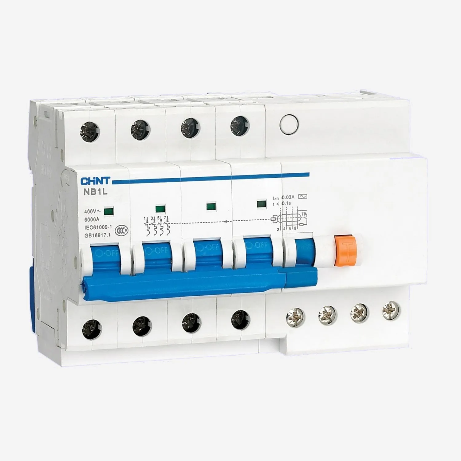 NB1L — премиальные дифференциальные автоматы Chint, дополняющие серию автоматических выключателей NB1. В серию входят однофазные и трёхфазные устройства с номинальным током от 6 до 63А с кривыми B, C, чувствительностью от 30 до 300мА и классами A, AC. Для серии NB2LE подходят все расцепители и дополнительные контакты серии NB1.