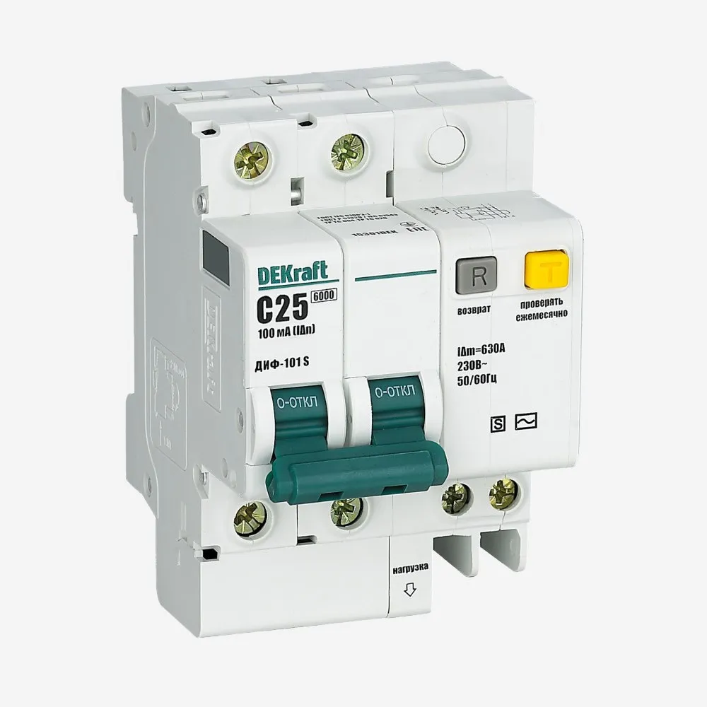 Аппараты серии ДИФ-101 S - селективные - с задержкой времени отключения. При срабатывании дифференциального автомата от утечки тока выступает кнопка «Возврат», которая, таким образом, указывает отключения цепи — именно утечку, а не перегрузку или короткое замыкание. Аппарат не даст возможности взвести его повторно, если предварительно не была нажата выступившая кнопка «Возврат»