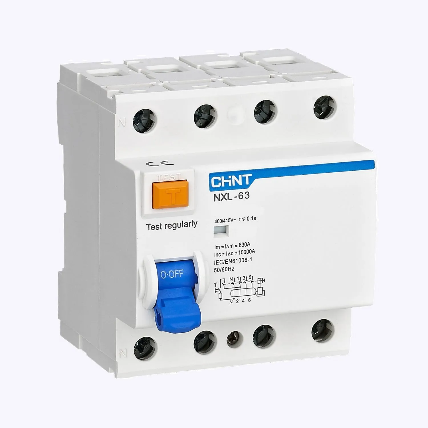Устройства защитного отключения (УЗО) Chint Next NXL-63 подходят как для бытовых щитков, так и для промышленных установок. УЗО данной серии имеют кнопку «тест» на лицевой панели, что позволяет проверить их работоспособность, имитируя ток утечки.