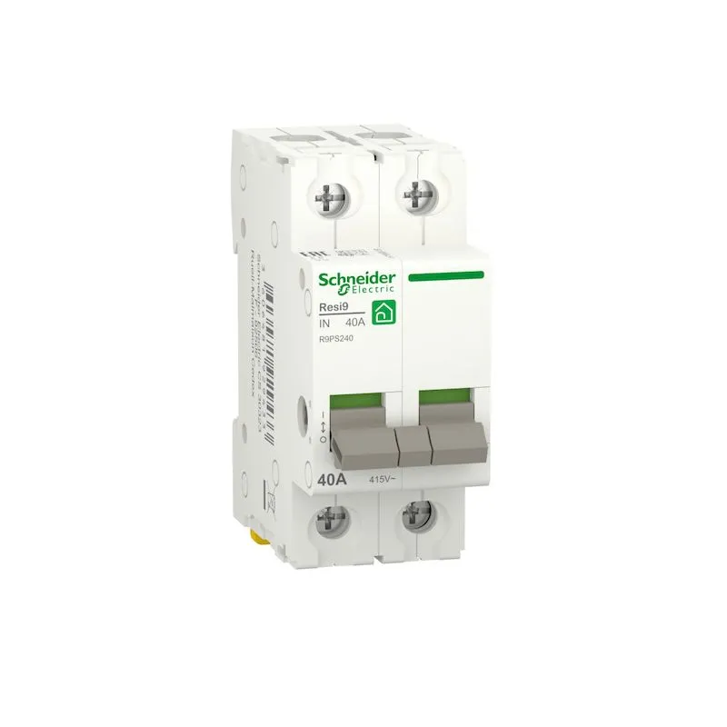 Серия выключателей нагрузки Resi9 от Schneider Electric для жилых объектов, больниц, школ, детских садов и промышленности. имеют наиболее востребованные характеристики, применяются в проектах, где не требуется установка дополнительных контактов, расцепителей и других аксессуаров.