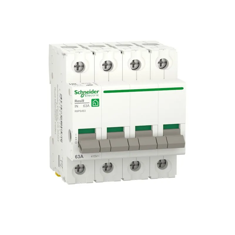 Серия выключателей нагрузки Resi9 от Schneider Electric для жилых объектов, больниц, школ, детских садов и промышленности. имеют наиболее востребованные характеристики, применяются в проектах, где не требуется установка дополнительных контактов, расцепителей и других аксессуаров.
