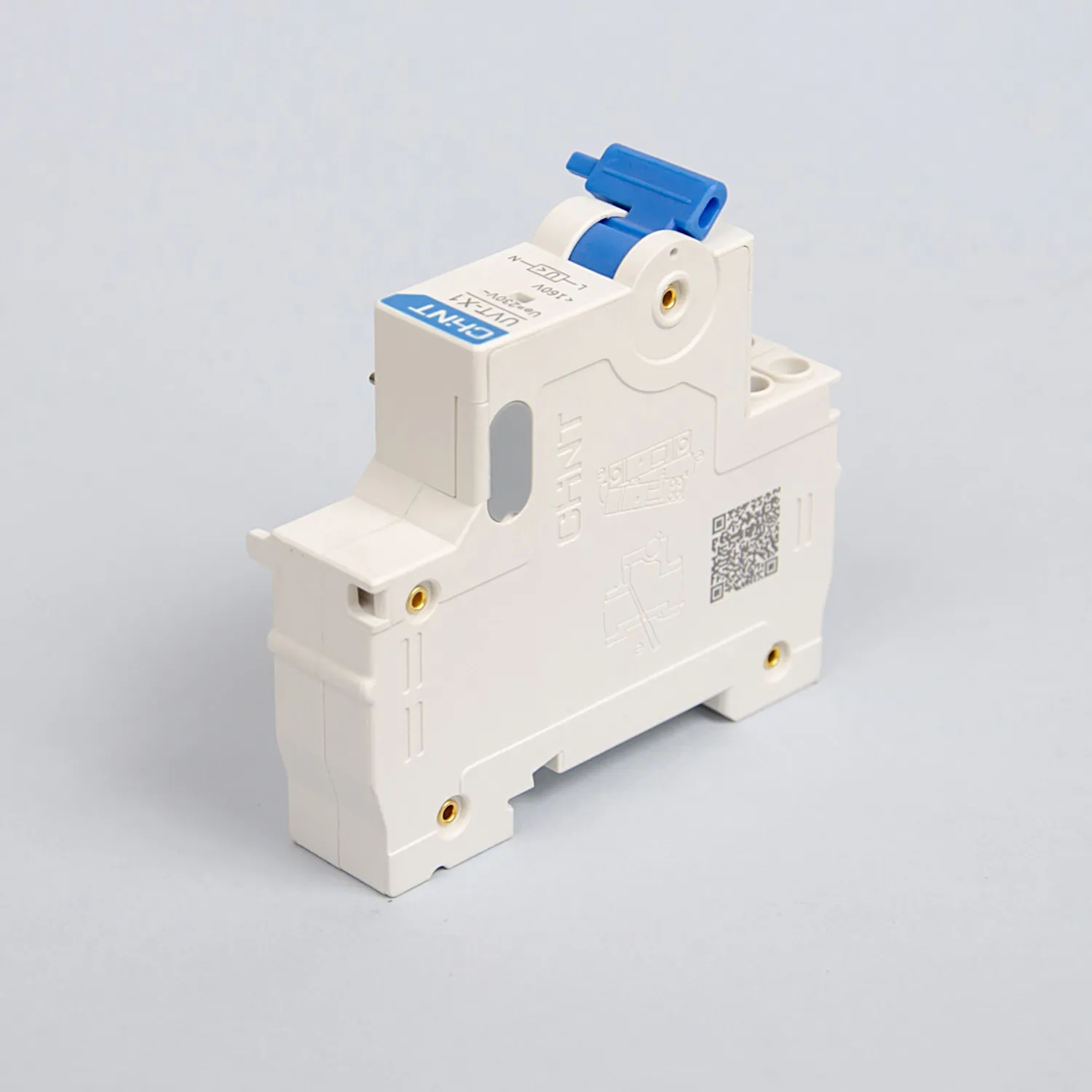 Расцепитель минимального напряжения отключает автоматический выключатель и предотвращает его включение, если приложенный к нему уровень напряжения ниже 160В AC. Используется для контроля уровня напряжения в сети, а также для дистанционного отключения автомата в ответственных применениях, где отсутствие питания или обрыв цепи управления должен приводить к отключению автомата.