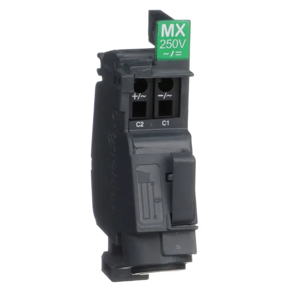 Используется для дистанционного управления, позволяет отключить автоматический выключатель при подаче напряжения на его катушку. Он устанавливается внутри корпуса автоматического выключателя и воздействует на механизм расцепителя.