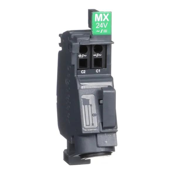 Для автоматических выключателей Schneider Electric, серии Compact NSXm. Используется для дистанционного управления, позволяет отключить автоматический выключатель при подаче напряжения на его катушку. Он устанавливается внутри корпуса автоматического выключателя и воздействует на механизм расцепителя. Расцепителем управляют с помощью кнопки, ПЛК или реле напряжения.