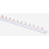 Соединительные шинки предназначены для компактного подключения модульного оборудования: автоматических выключателей и УЗО с шириной одного полюса 18м. Длина шинки 1м соответствует 54 модулям по 18 мм. При монтаже шинку обрезают «по месту» под необходимое количество модулей
