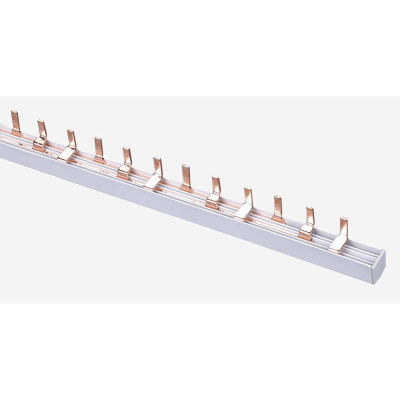 Соединительные шинки предназначены для компактного подключения модульного оборудования: автоматических выключателей и УЗО с шириной одного полюса 18м. Длина шинки 1м соответствует 54 модулям по 18 мм. При монтаже шинку обрезают «по месту» под необходимое количество модулей