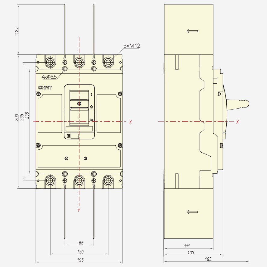 Включатель-разъединитель NM8NSD на базе автоматического выключателя серии NM8N в том же корпусе с сохранением габаритов, креплений и возможности установки некоторых аксессуаров