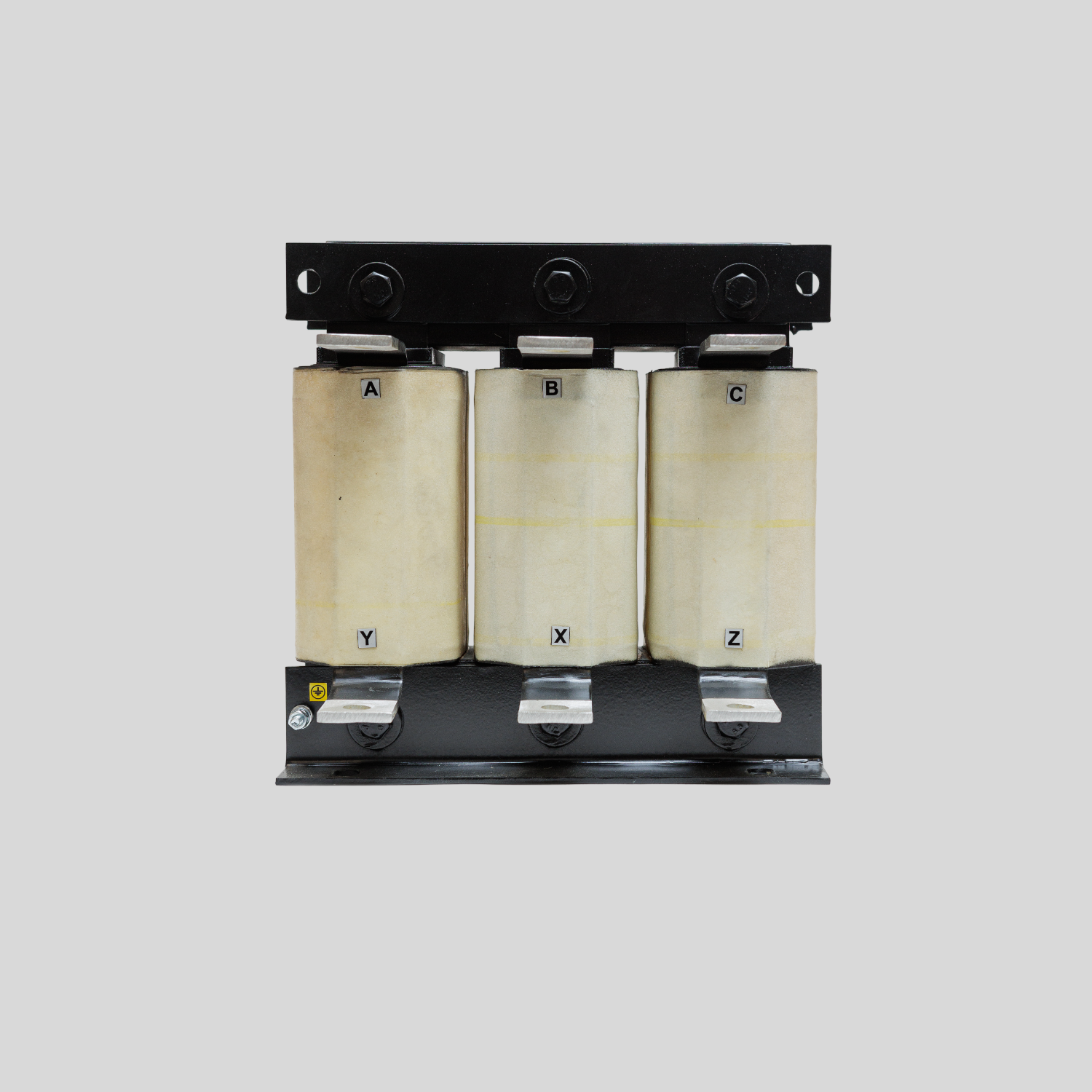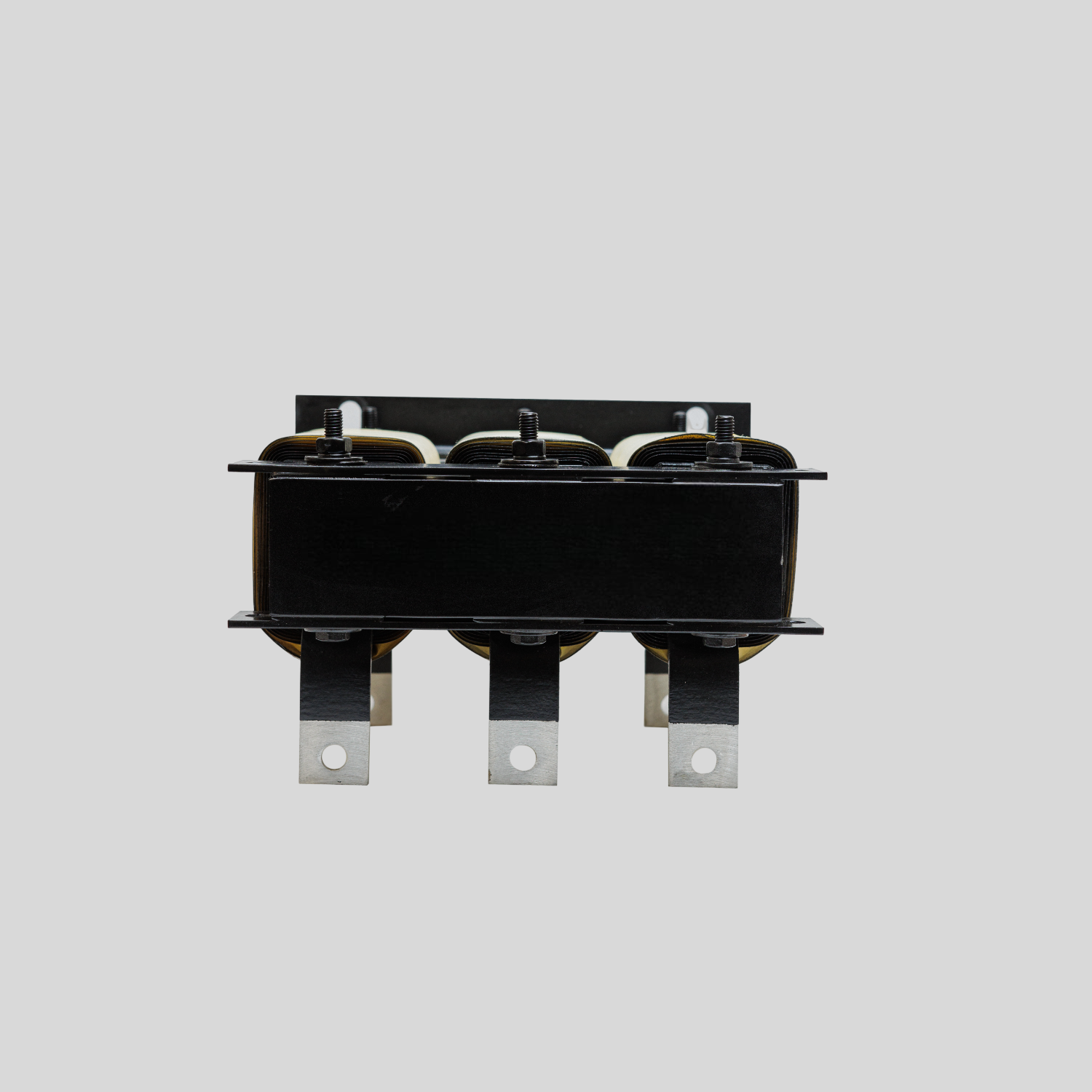 Моторный дроссель устанавливается между преобразователем частоты и двигателем. Представляет собой трехфазную катушку индуктивности, намотанную на магнитный сердечник.