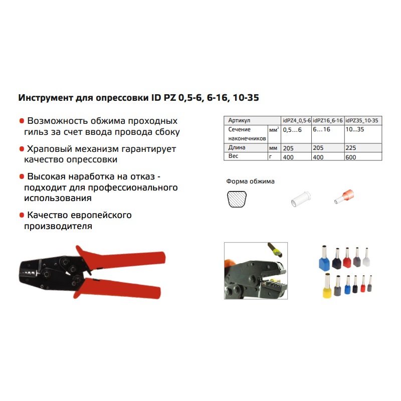 idPZ16_6-16 | Инструмент для опрессовки трубчатых наконечников, 6-16кв.мм, трапеция, ERGOM
