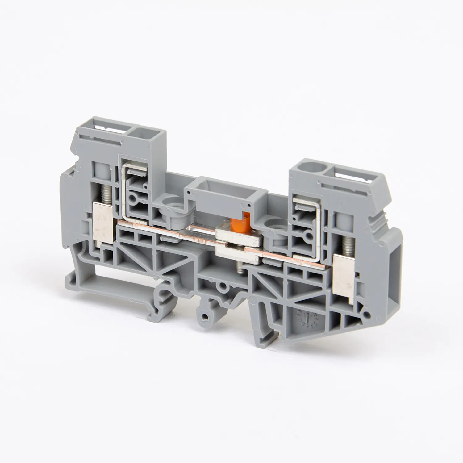 Измерительная клемма Phoenix Contact, серии URTK с винтовым зажимом для коммутации цепей трансформаторов тока. В зависимости от положения размыкателя и наличия перемычек, клемма работает в двух режимах: