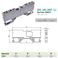 1020277 | OPK 2,5C | Клеммник пруж.быстрозажимной (Push in), 4-х выводной, 2,5мм.кв., (черный), (уп. 50шт),1254, Onka