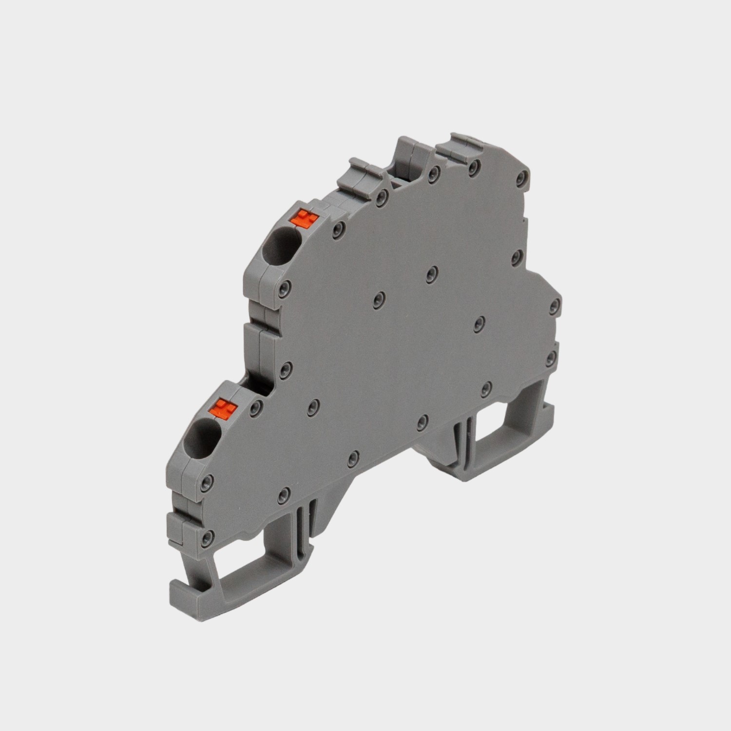 Наборные клеммы позволяют собирать индивидуальные клеммные ряды под каждую конкретную задачу. Это могут быть силовые и сигнальные цепи разных сечений, клеммы с держателем предохранителя и с размыкателем для цепей измерения. Клеммы можно комбинировать практически как угодно и собирать в ряд на одной DIN-рейке. С помощью втычных перемычек можно избежать лишних соединений и отказаться от шлейфа из монтажного провода, концы которого приходится соединять двойным наконечником завышая необходимое сечение клеммы.