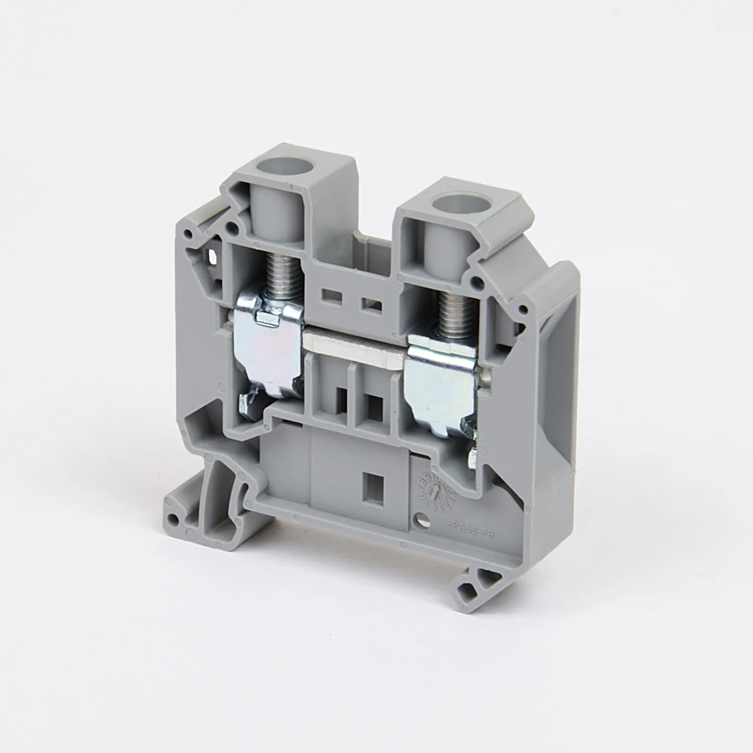 Корпуса клемм серии UT изготовлены из серого пластика, литая зажимная клетка из никелированного медного сплава.