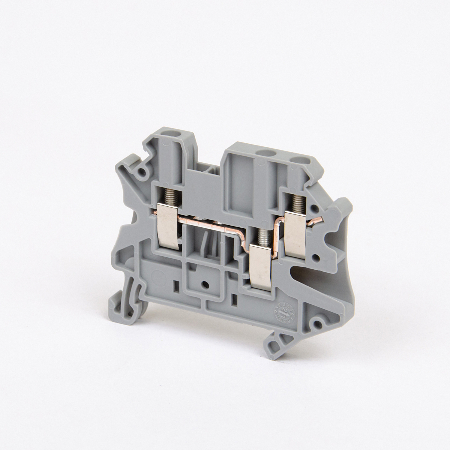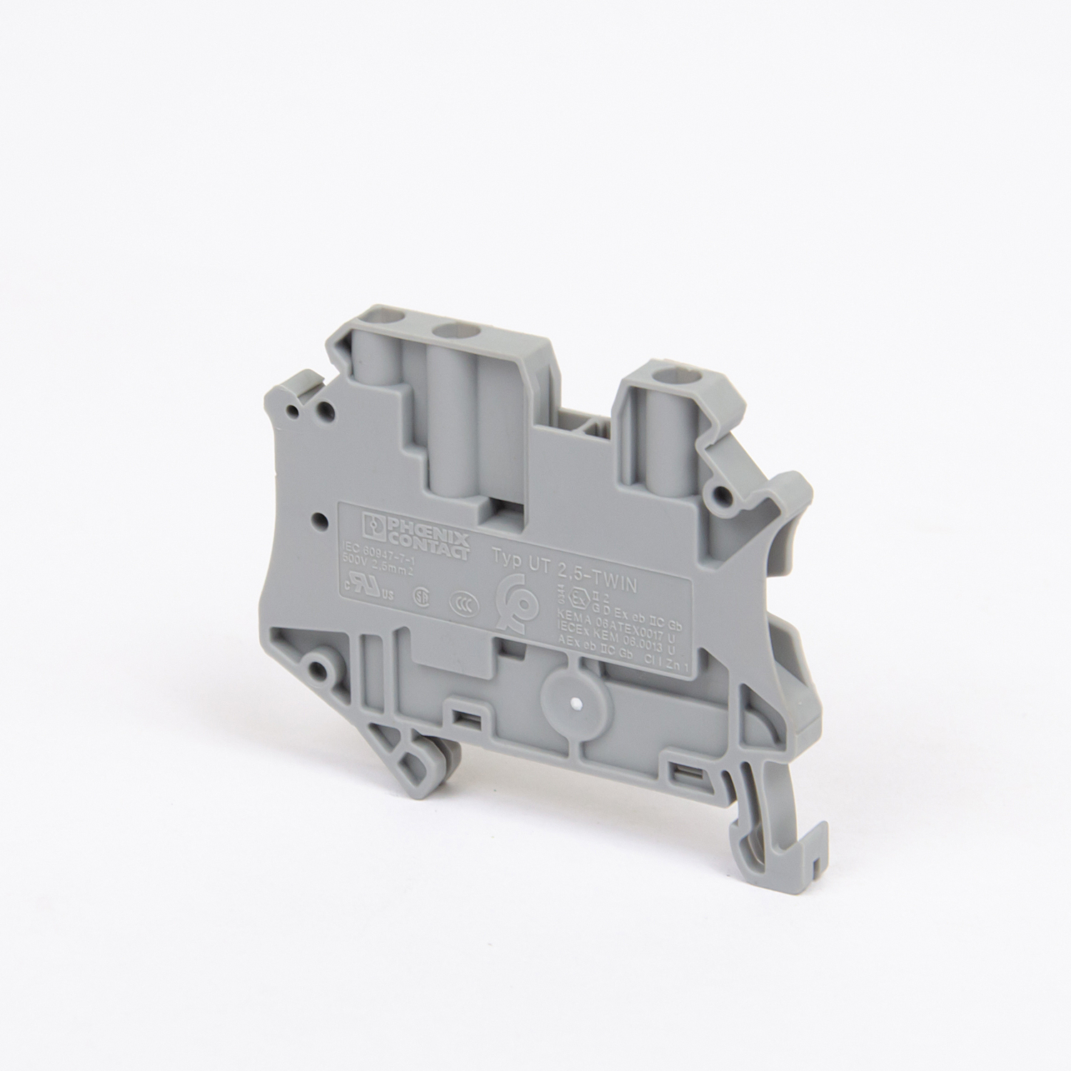Корпуса клемм серии UT изготовлены из серого пластика, литая зажимная клетка из никелированного медного сплава.