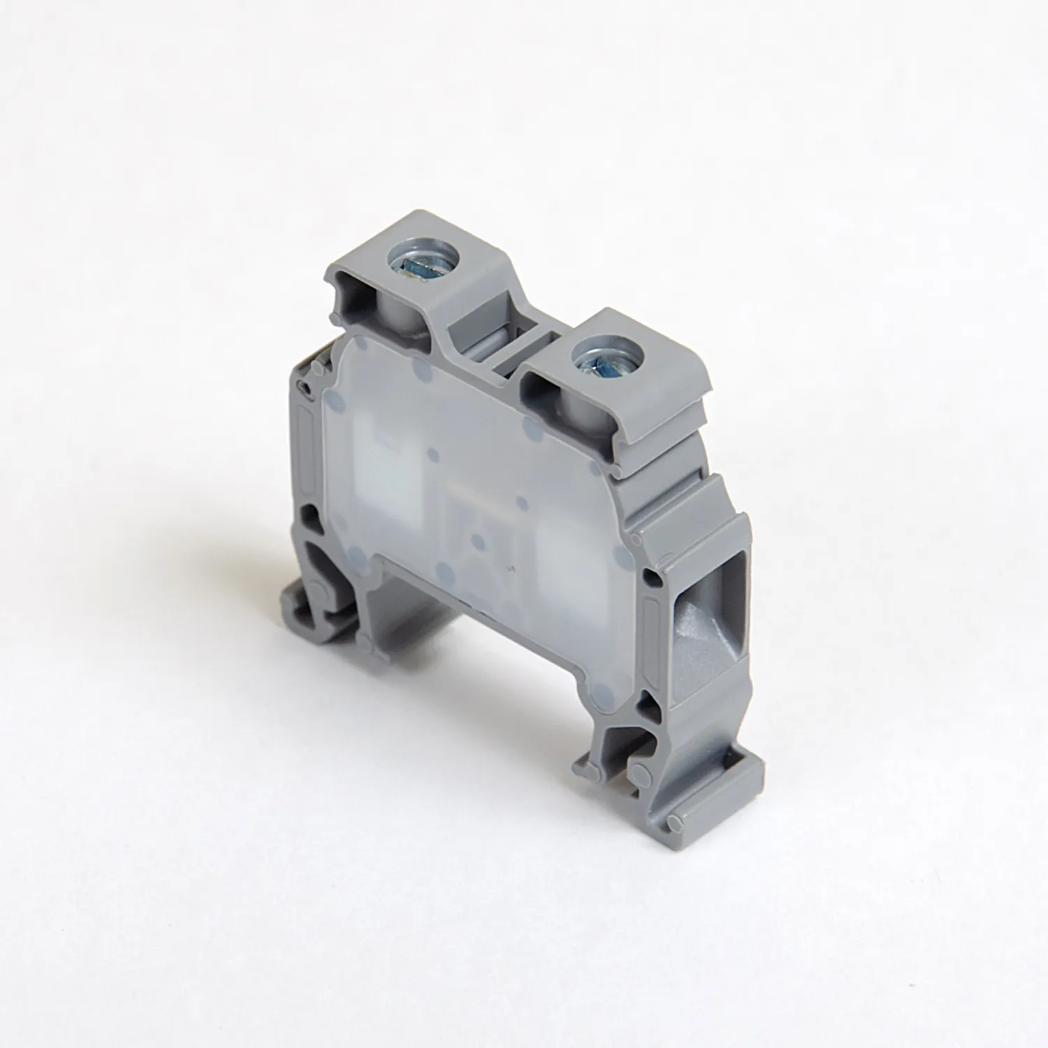 Встроенная боковая заглушка — это отличительная черта клемм Onka. Токоведущая часть закрыта с обеих сторон и боковая заглушка не потребуется при монтаже, за это приходится расплачиваться чуть большей шириной клеммы — это заметно для клемм 2,5…4 мм². Версия клемм SLIM по ширине совпадает с популярными брендами имеющими открытую токоведущую часть. Корпус клеммы изготовлены из полиамида 6.6, зажимная клетка из оцинкованной стали с самоконтрящейся конструкцией винтового зажима, а токопроводящая часть из лужёной меди.