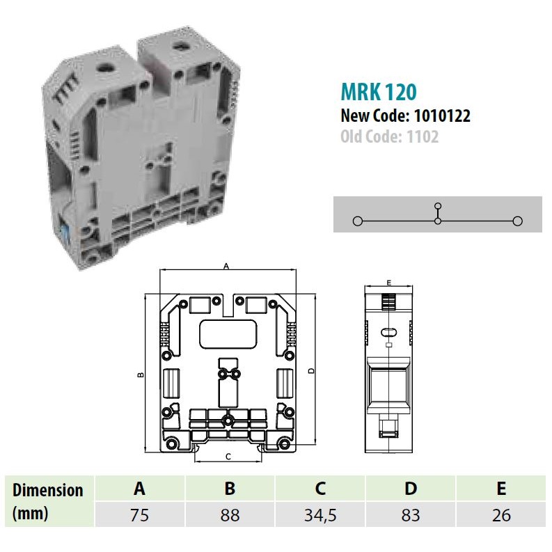 1010125 | MRK 120 | Клеммник на DIN-рейку 120мм.кв., (синий),1105, Onka