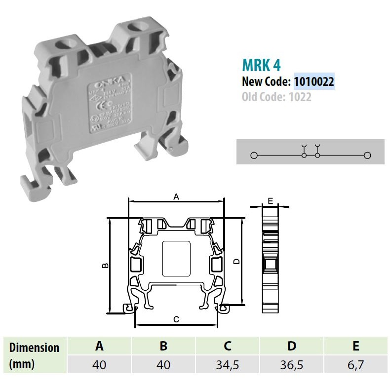 1010028 | MRK 4 | Клеммник на DIN-рейку 4мм.кв. (желтый),1028, Onka