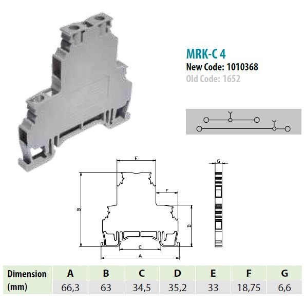 1010371 | MRK 4C | Клеммник 2-х ярусный 4 мм.кв. (синий),1655, Onka
