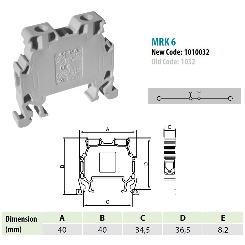 1010038 | MRK 6 | Клеммник на DIN-рейку 6мм.кв. (желтый),1038, Onka