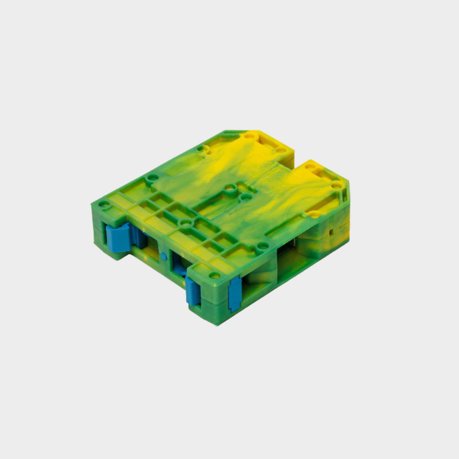 Клемма желто-зеленого цвета без заземляющего контакта на DIN-рейку
