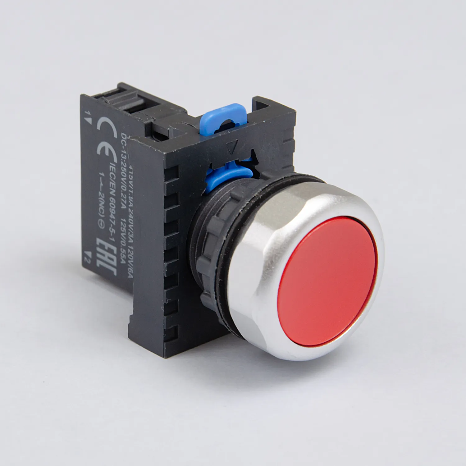 Красный цвет кнопки в промышленных установках означает остановку машины, отключение питания, включение пожарной сигнализации. Кнопки «СТОП, «ОТКЛЮЧЕНО» и аварийные кнопки должны быть красного цвета.