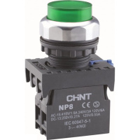 667310 | Кнопка NP8-10GND/3 1НО зелёная, подсветка LED 110-220В AC, IP65, Chint