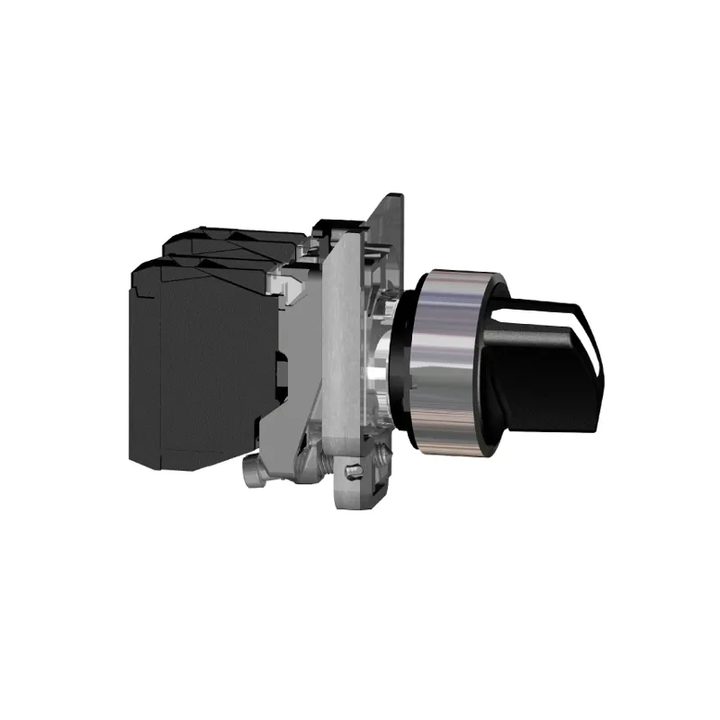 Переключатель со стандартной чёрной ручкой, 2 НО контакта, 3 положения с фиксацией. Каждый НО контакт замыкается в одном из крайних положений, в центральном положении все контакты разомкнуты. Комплектное устройство готовое к монтажу.